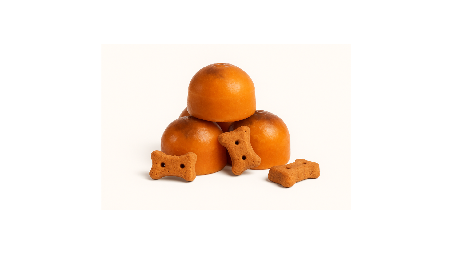 Insira um mini petisco em formato de osso em cada molde como “cabo”